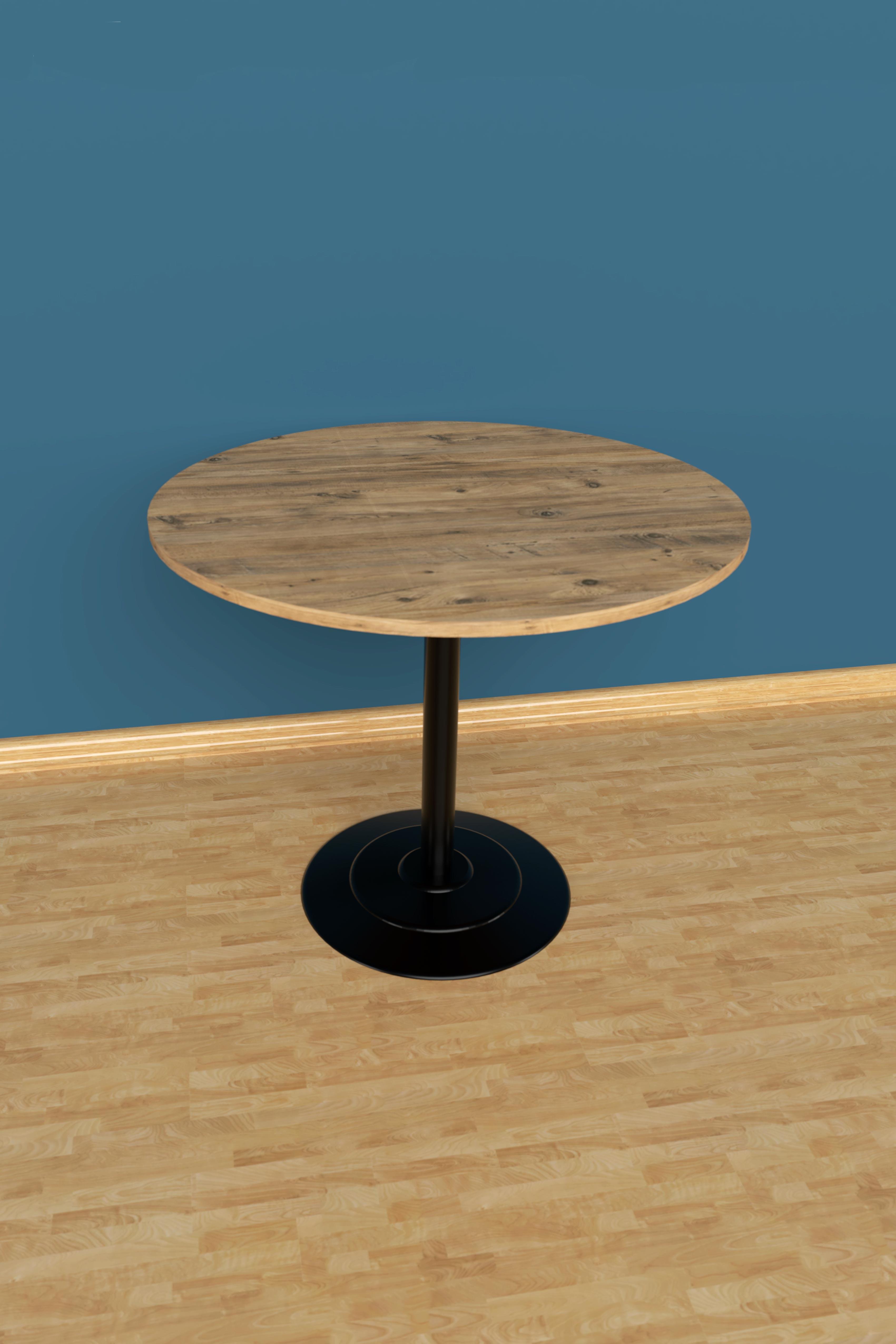 Krom Ayaklı Yuvarlak Ahşap Tablalı Masa